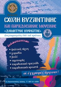 Η Ιερά Μητρόπολις Καρπενησίου ανακοινώνει πως άρχισαν οι εγγραφές και τα μαθήματα στη Σχολή εκκλησιαστικής και παραδοσιακής μουσικής, όπου διδάσκονται η Βυζαντινή μουσική, το δημοτικό τραγούδι και παραδοσιακά μουσικά όργανα, όπως βιολί, ταμπουράς και παραδοσιακά κρουστά.